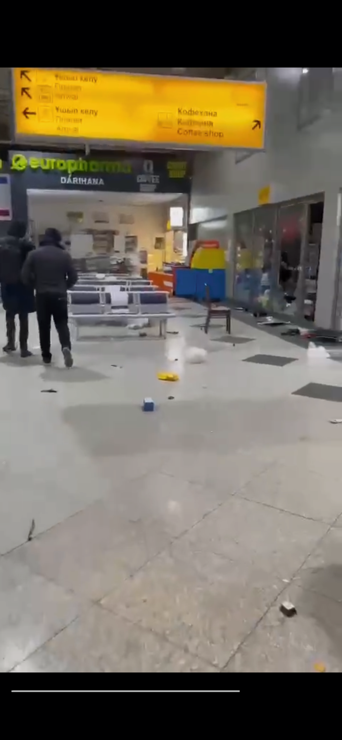 "Около 800 преступников захватили международный аэропорт. В результате были отменены вылет 60 рейсов и прилет 56, что вызвало транспортный коллапс, и большие проблемы для граждан, которые не смогли вылететь из города Алматы либо вернуться".